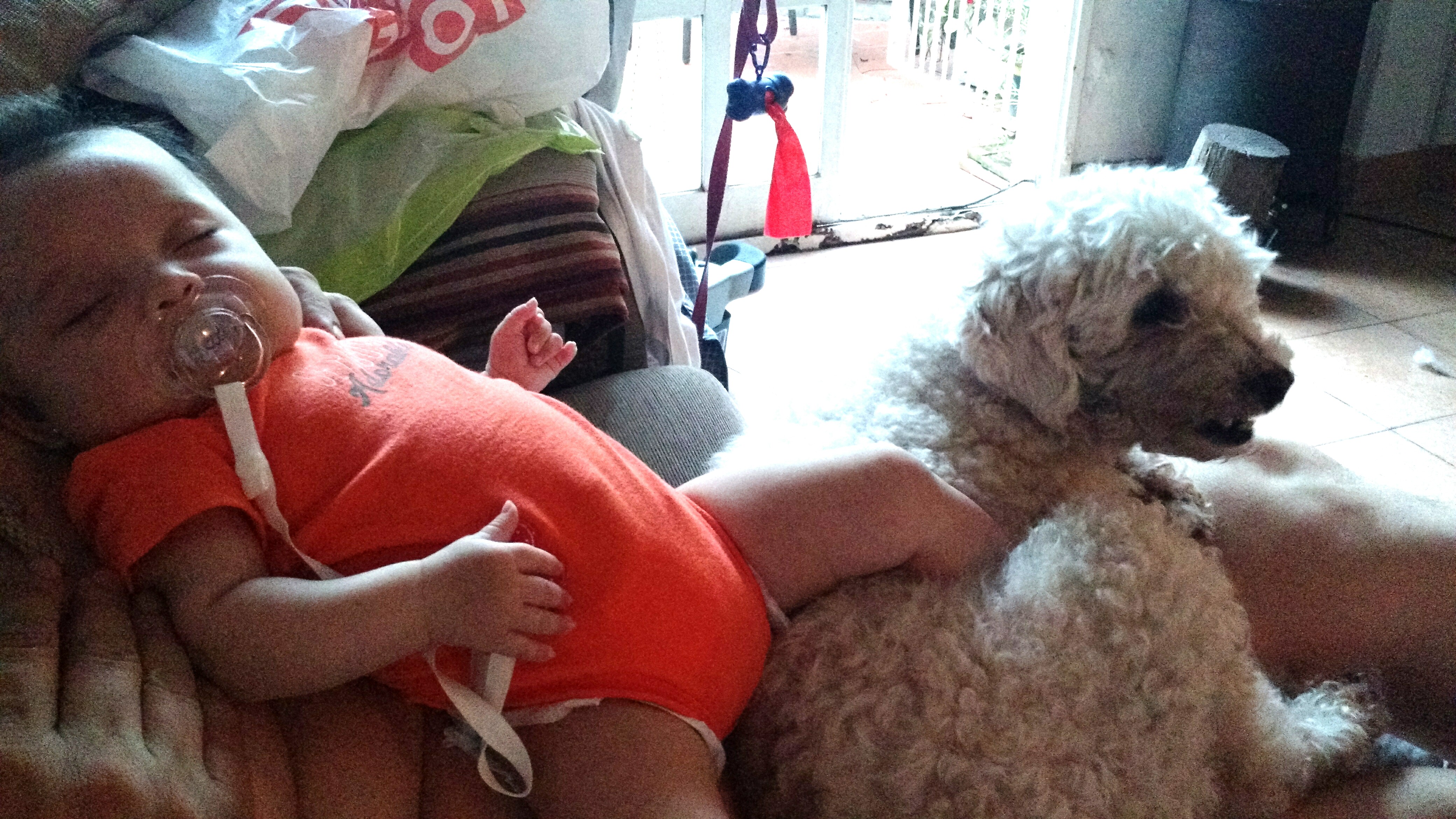 El gordo Benji, el ladrón de carnicerías, el saltador de muros, perro callejero de San Isidro, acompañó a Andrea con ternura durante todo el embarazo sintiendo muchas veces la panza y siendo un gran perrito obediente por primera vez en su vida: pero una semana antes del parto, tras un par de síncopes, se tumbó en el piso y su corazoncitó paró. Nos dejó mansamente como si quisiera hacer lugar para lo que venía en casa.