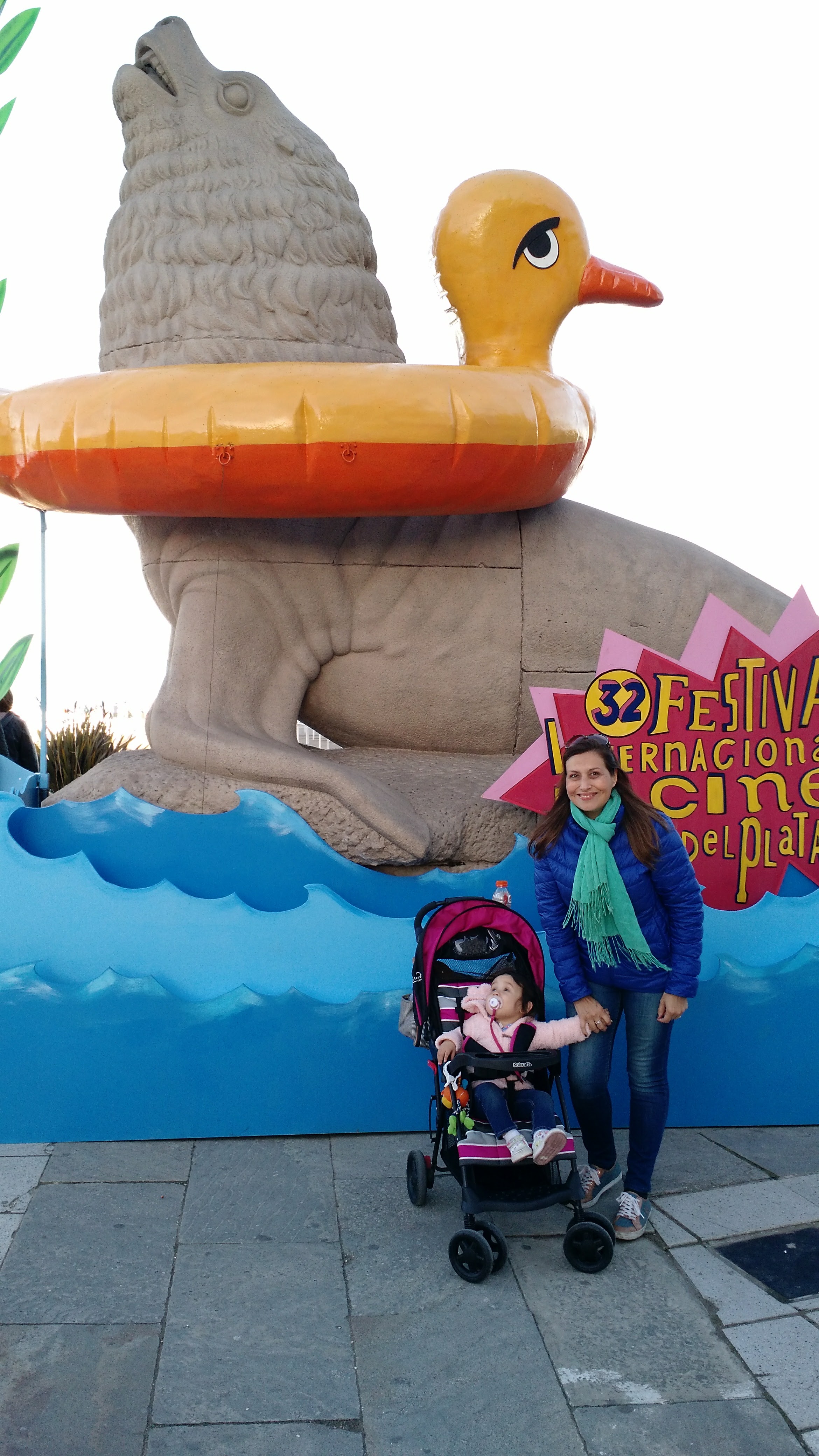 Así terminamos un finde de fiesta en Mar del Plata con una Ninita muy sorprendida con los lobos marinos «tuneados» para el festival de cine.