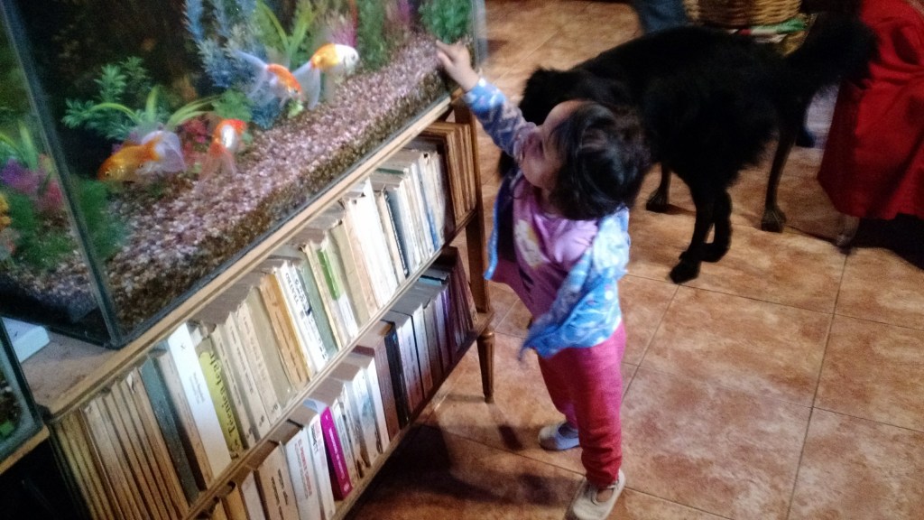 Una de las cosas lindas de la casa de Cacho, más allá del paisaje de las ventanas con vista a las sierras de los Comechingones, era la cantidad de animales que tenía: Nina ya de chiquita era super bichera así que eso era algo que disfrutaba mucho: peces, gatos, perros, pájaros de todos los colores en el jardín y hasta caballos pasando por la puerta… para ella era todo un plan!