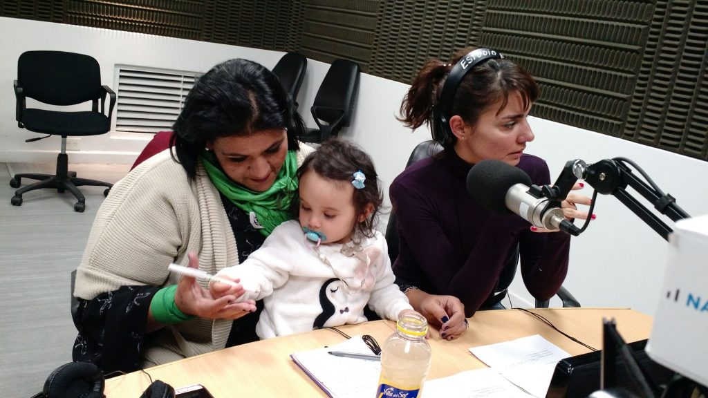 Como para darle autenticidad al asunto, siendo que su madre estaba trabajando, tuve que llevar a Nina al programa en Radio Nacional. Así que fue mimada por las conductoras.