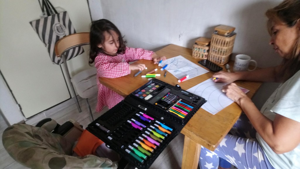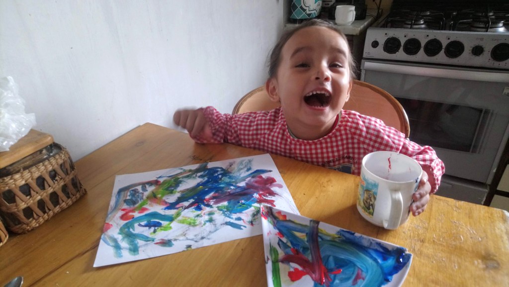 Pero los días pasaban y Andrea se preocupaba por Nina: cómo darle actividades o algo que supliera su falta de jardín de infantes? Por eso, apelando a su afinidad con el arte, lo primero fue empezar a pintar y dibujar juntas.