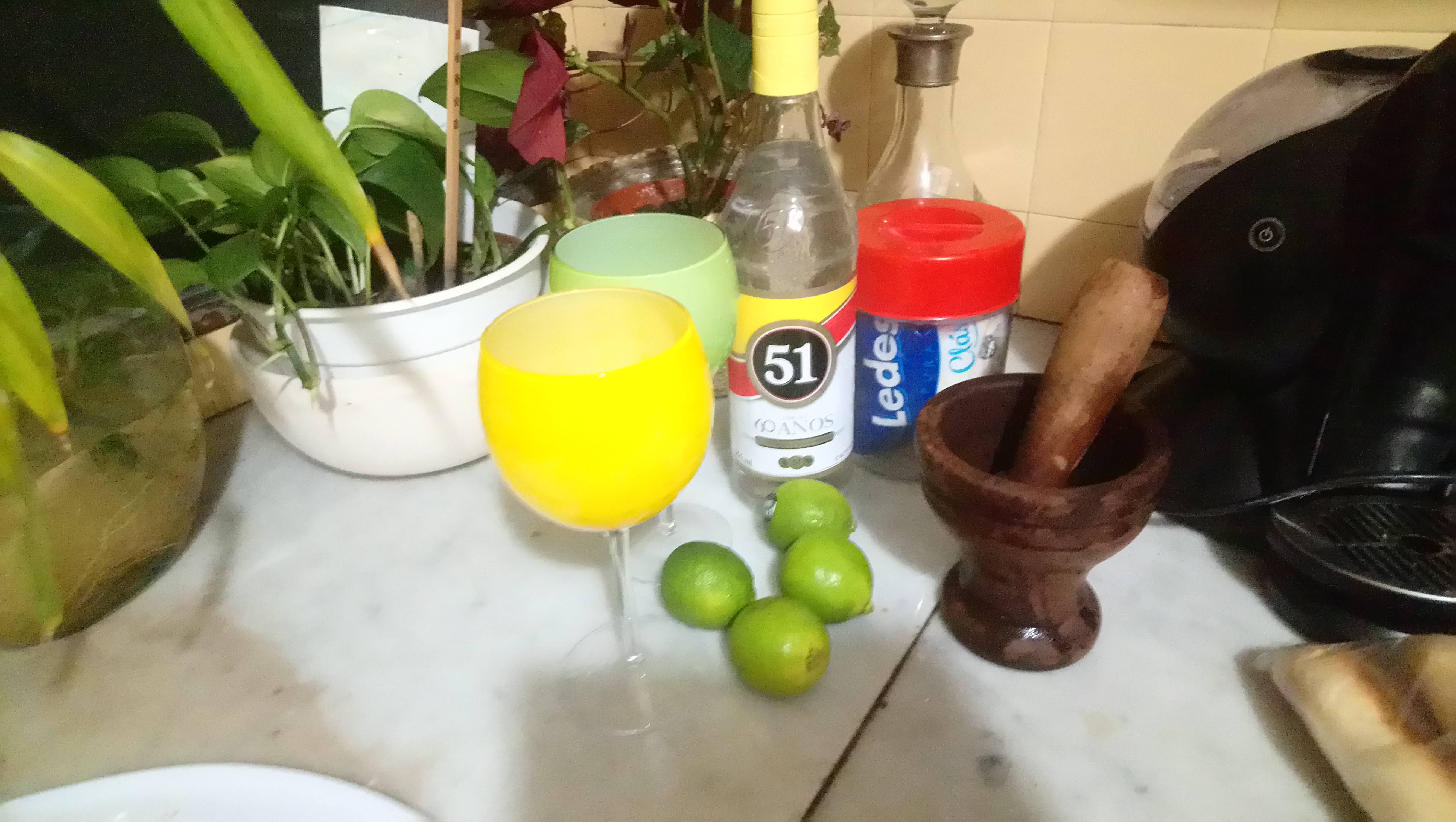 Para pasar el mal momento, con Andrea recordábamos aquellas noches soñadas que veníamos de pasar hacía apenas unos días en «nuestro» balcón frente al mar de Peró, con unas caipirinhas que ella sabía preparar excelentemente. Eso duró mientras la botella de «cashasa 51» se mantuvo con vida.