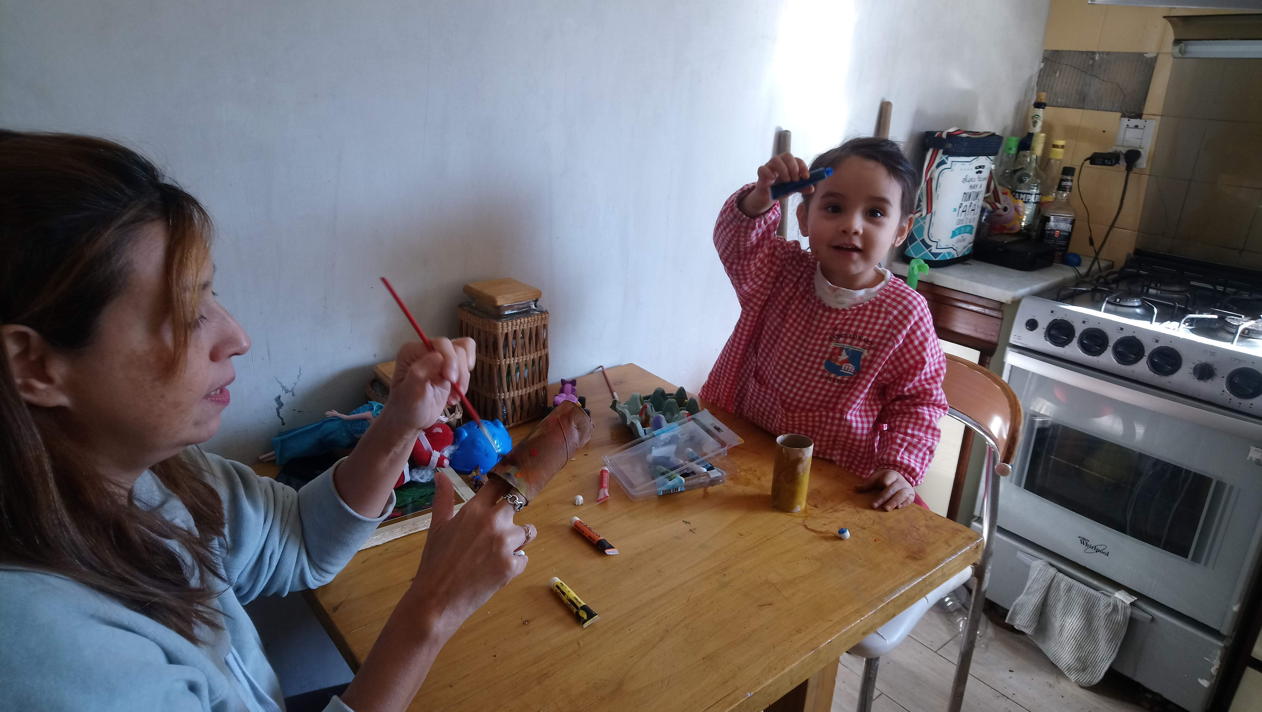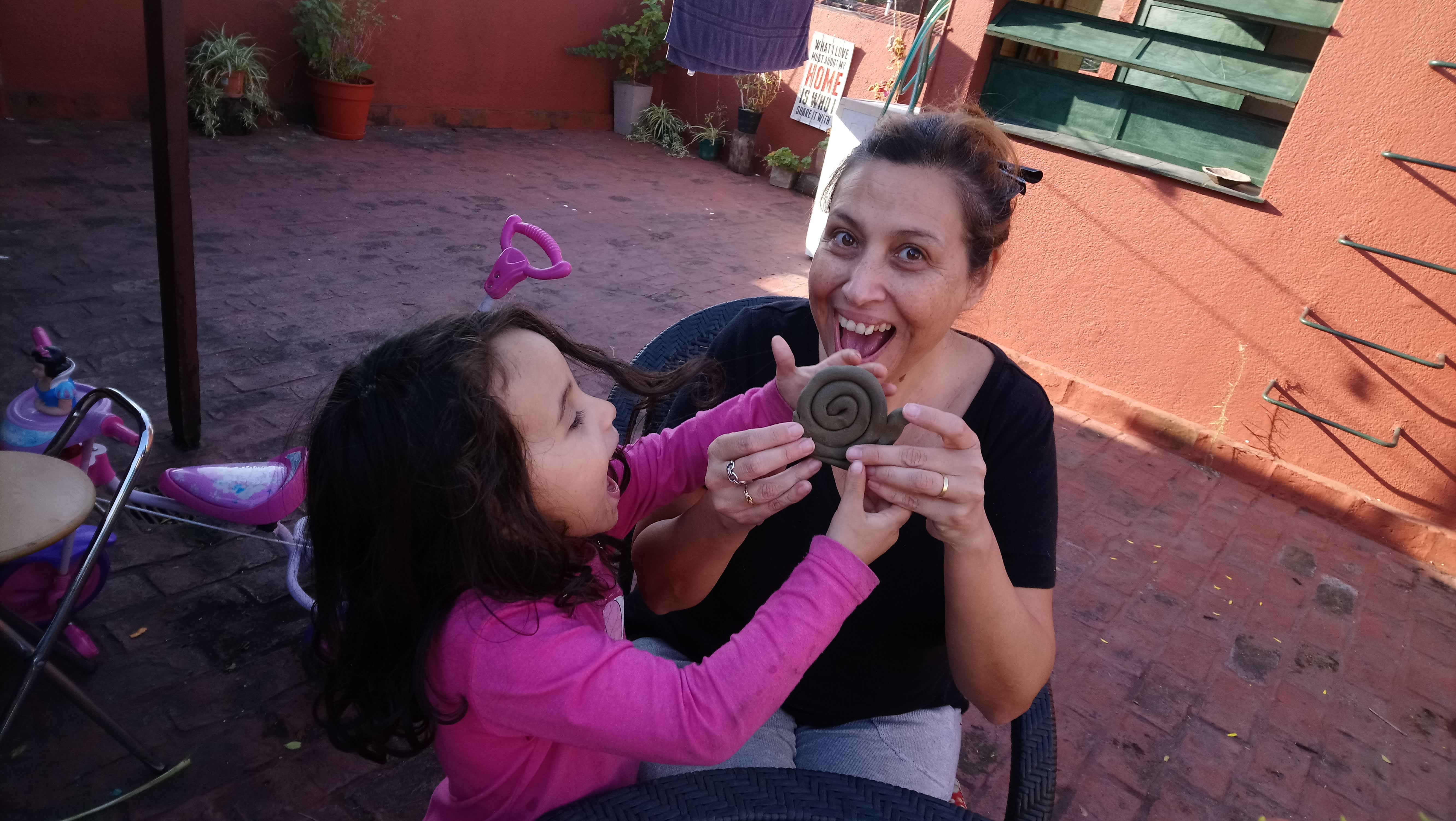 Pero Andrea -puro corazón- se esforzaba porque Nina no notara su preocupación y seguía ocupándose por las tardes de pintar, cocinar o hacer manualidades-como este caracol- con ella.
