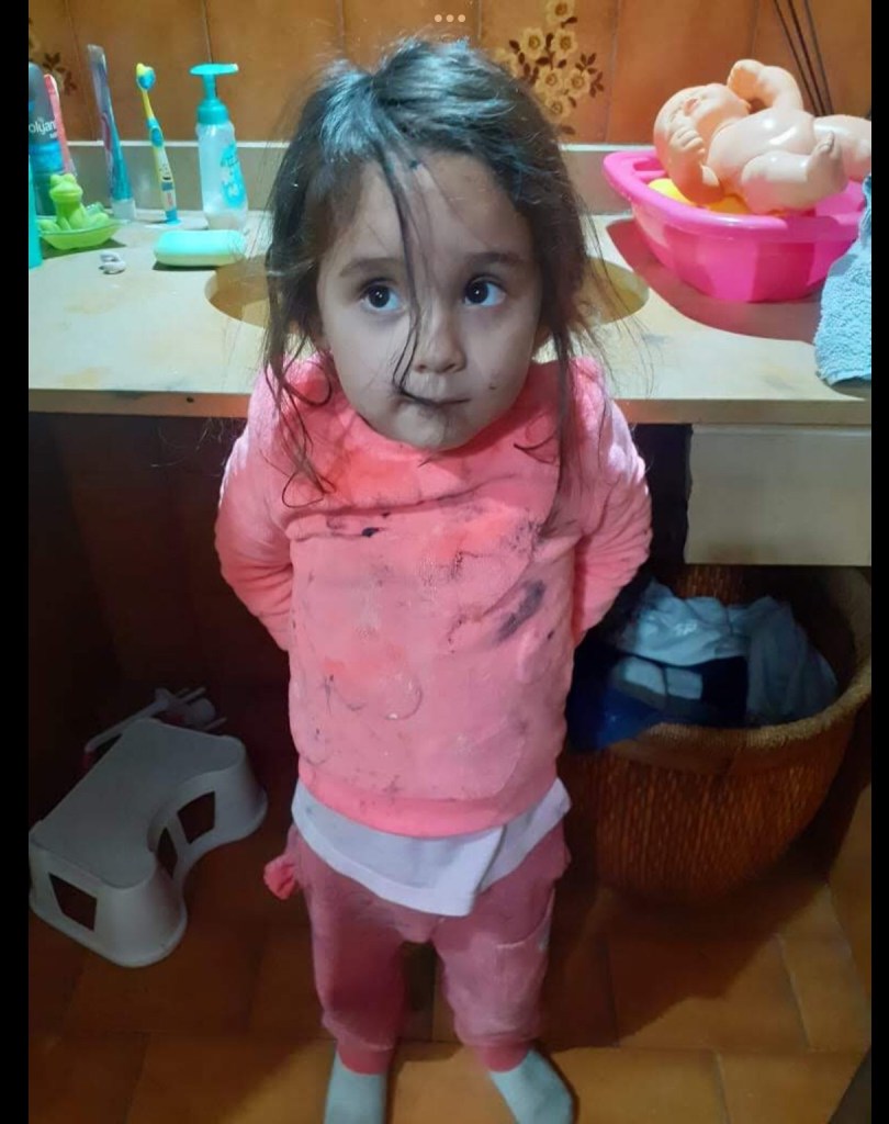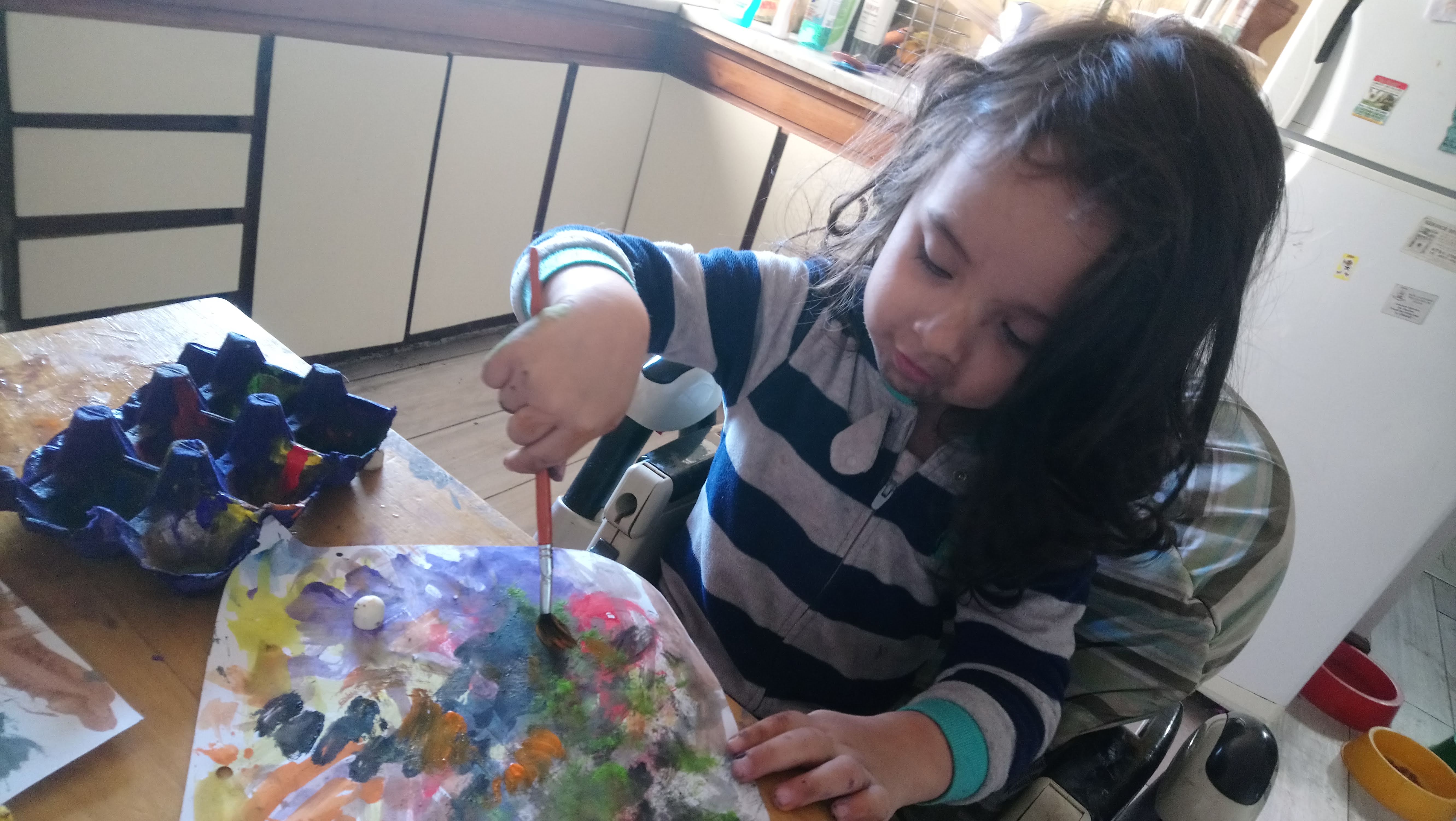 La encontré en el baño toda compungida: escondía sus manitos llenas de pinturas como si así fuese a zafar de algo!