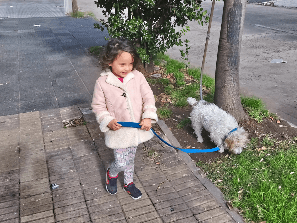 Yo pensaba: “Cómo puede ser posible que consideren que esté bien que pueda sacar a caminar a mi perro, pero no a mi hija”? Así que desde entonces, en un pequeño acto de rebeldía, cada vez que sacaba a los perros, Nina venía a pasearlo también.