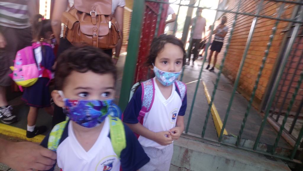 Al mes siguiente, en Marzo finalmente Nina pudo volver a ver a sus amigos: el régimen era mixto: alternando clases virtuales con presenciales y llevando el BARBIJO PUESTO TODO EL TIEMPO… pero al menos ya no estaba sola y encerrada!