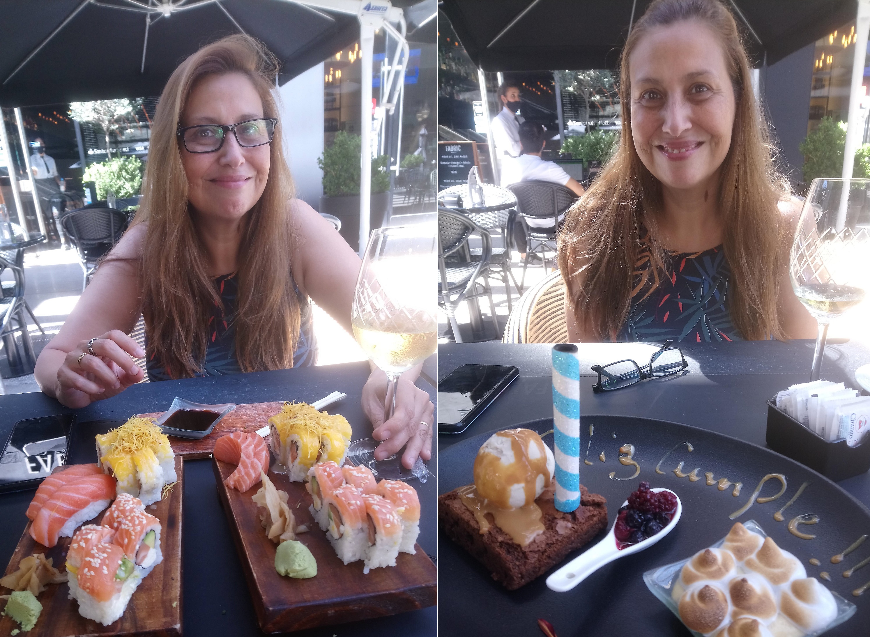 Como siempre en nuestros cumpleaños nos tomamos el mediodía para almorzar los dos solos. Fuimos a un lugar que le gustaba a ella en donde hacían sushi… era tan raro estar al fin sin Nina!!!