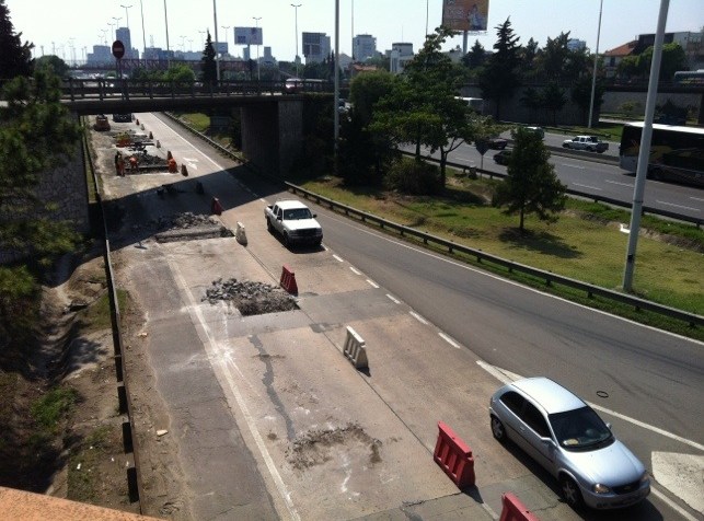 La colectora entre puente Saavedra y Superí, sentido al riachuelo, llena de estos simpáticos agujeritos…