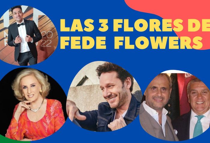 Esta semana Fede Flowers nos trae dos historias de casamientos: La de Pepito Cibrian que desembocaría en ruptura y otra vinculada con Georgina Barbarossa. Ademas María Fernanda Callejón intentando sacar … Seguir Leyendo Las tres flores de Fede Flowers: hoy Pepito Cibrián, Georgina Barbarossa y María Fernanda Callejón.