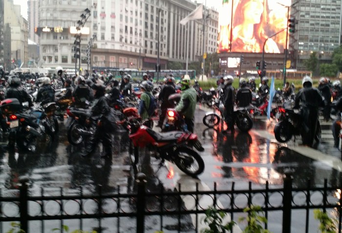 Protesta los motoqueros que rechazan la implementación de las patentes grabadas en cascos y chalecos como excusa para controlar a los motochorros