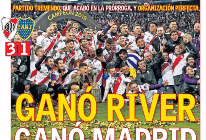 Así reflejan las principales tapas deportivas e internacionales el triunfo de River ante Boca en la super final de América jugada en Madrid