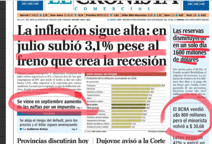 #Rapidito de #Noticias de hoy: -La #Inflación sigue alta: 3,1% en julio pese a la recesión. -Cambiemos no pudo habilitar la sesión para allanar a #CFK -Roggio también «arrepentido» -Joven … Seguir Leyendo Ya está disponible el #Rapidito de noticias de hoy Jueves