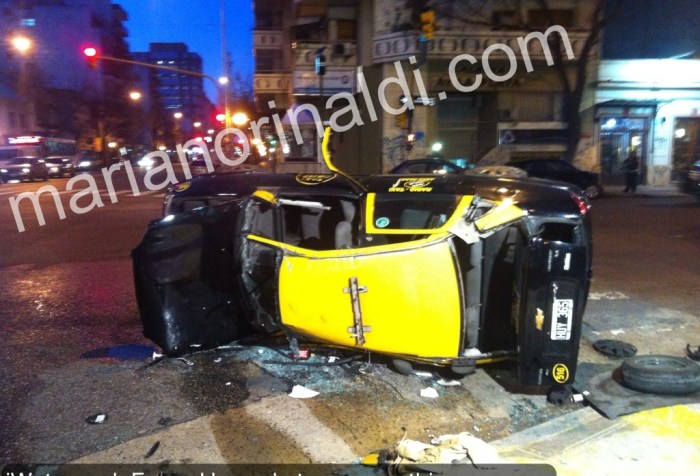 Se trata del choque entre un taxi corsa que iba con pasajero y un gol. Alguno «cortó semaforos» Así quedó el taxi