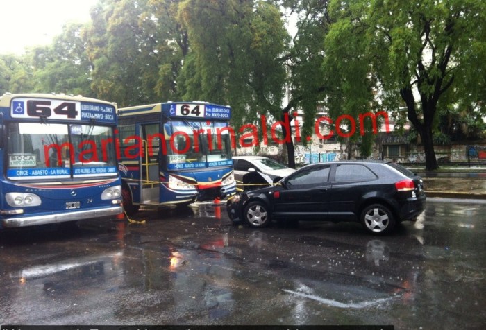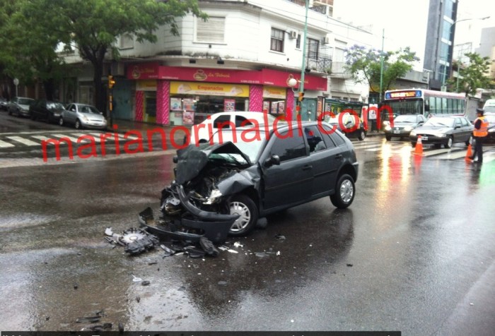 Este audio embistió frontalmente a un colectivo de la 64 que esperaba el semáforo. En este caso -al menos- no hubo heridos