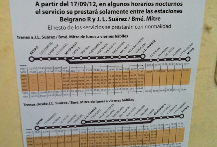 Desde ayer -y con escasas horas de antelación en el anuncio- los tres ramales del Ferrocarril Mitre prestan un servicio nocturno restringido. La excusa es la misma que en el … Seguir Leyendo Ferrocarril Mitre: Para mejorar… Empeoramos