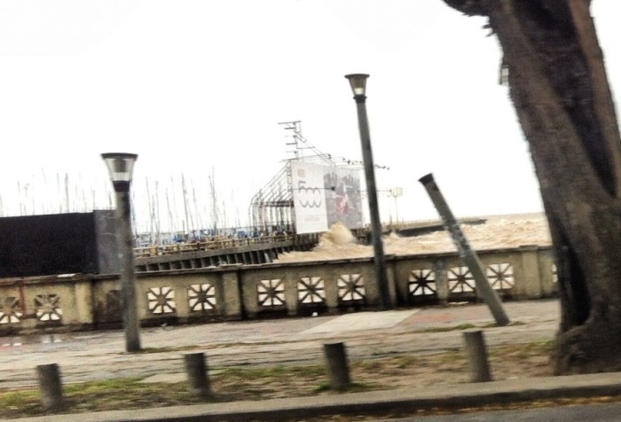Olas grandes y fuertes: frente a Aeroparque empieza a desbordar un poco de agua (altura de la plaza)