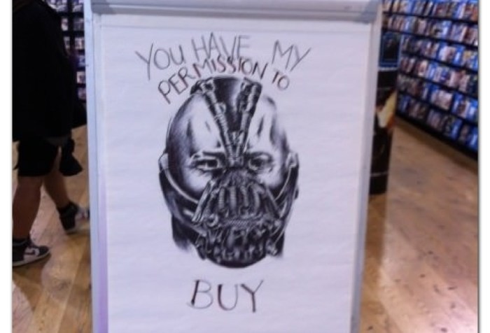 Mi amiga Missy me manda esta foto: «tiene mi permiso para comprar» dice el «enmascarado» que recuerda a Holmes… Obviamente no está en Colorado!