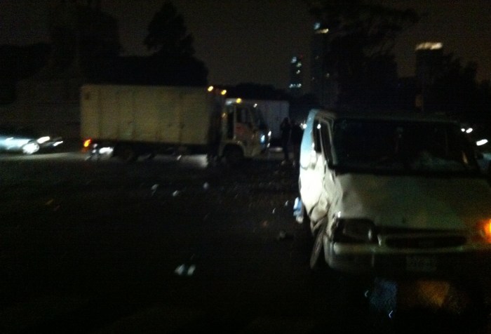 No hay luz ni semaforo Frente al planetario. Hay heridos. Participan una combi, un camión y dos autos
