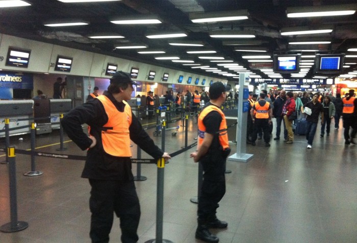 por una protesta programada para esta tarde en el hall de Aeroparque hay un descomunal operativo preventivo de seguridad