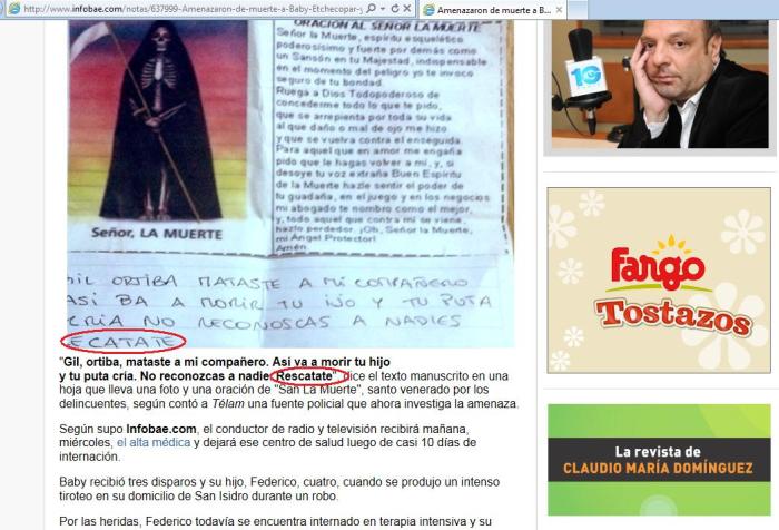 A mi me había sorprendido la supuesta aparición de una amenaza contra Baby Etchecopar en el Hospital de San isidro. Mi observadora amiga Denise me apunta: «che…. escriben «nadies» e … Seguir Leyendo «Rescatate» o «Recatate»?