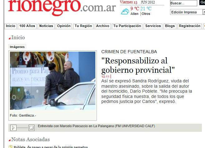 . El Dr gustavo Palmieri es el abogado de la viuda de Fuentealba: en esta nota realizada para «La Semana que viene» denuncia que Poblete no solamente sale de compras: … Seguir Leyendo «Poblete estaba preso en una comisaría que maneja su tío policia» dice el abogado de la viuda de Fuentealba